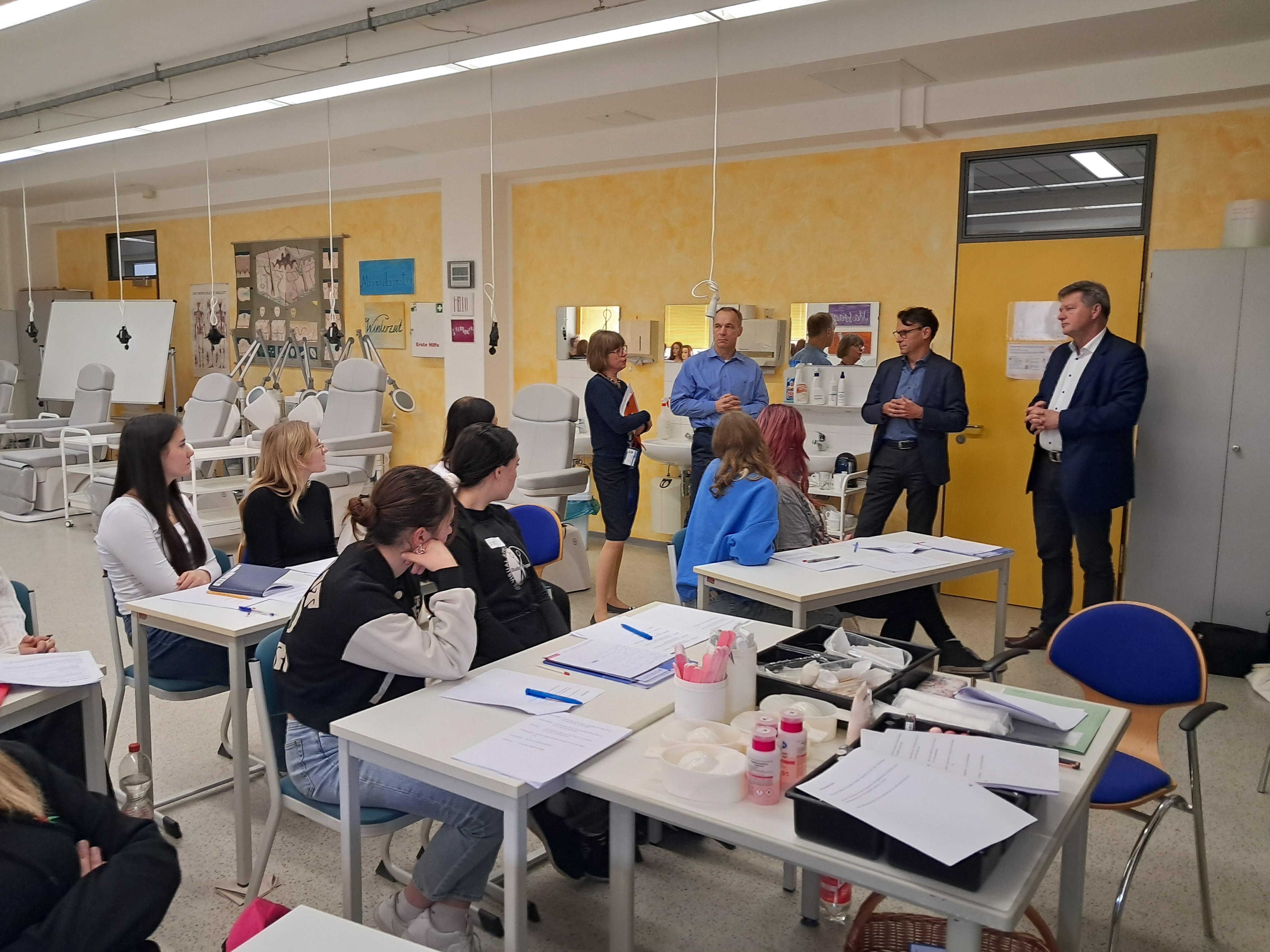 Głównym celem naszej wizyty było przeprowadzenie rozmów zarówno z uczestniczkami wyjazdu, opiekunkami oraz reprezentantami i wykładowcami Centrum Kształcenia. Podczas rozmów dowiedzieliśmy się, że zarówno polska, jak i niemiecka strona jest bardzo zadowolona ze stażu oraz formy prowadzonych zajęć. Uczennice są bardzo zmobilizowane i zainteresowane tematyką zajęć zarówno tych teoretycznych jak i praktycznych, które odbywały się także w niemieckich salonach fryzjersko- kosmetycznych.