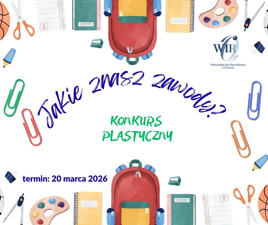 Wielkopolska Izba Rzemieślnicza w Poznaniu organizuje po raz XII Konkurs „Jakie znasz zawody?”. Pomysłodawcą konkursu jest Fundacja Społeczeństwo i Gospodarka w Poznaniu. Do udziału zapraszamy: