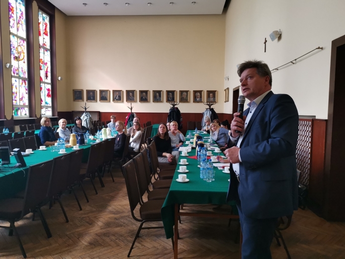 Na dzisiejszym poznańskim spotkaniu - podobnie z resztą, jak w innych miastach - Dyrektor Tomasz Wika przedstawił strukturę rzemiosła i wyjaśnił zebranym na czym polega istota dualnego systemu kształcenia zawodowego. Iwna Derda natomiast zaprezentowała zawody, w których można zdobyć kwalifikacje dzięki nauce w rzemiośle.