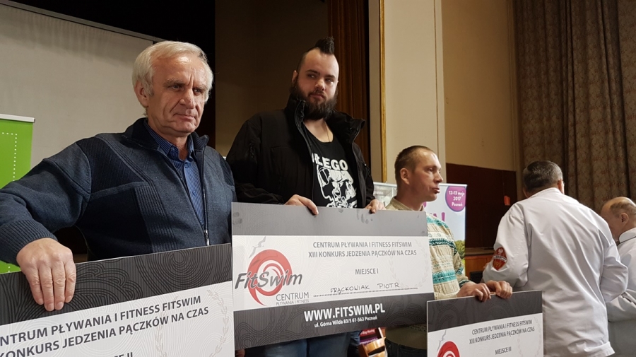 Od dziś pan Piotr może z dumą chwalić się zwycięstwem w XIII Mistrzostwa Poznania w jedzeniu pączków. 10 pączków pochodzących z różnych pracowni cukierniczych zjadł w czasie 7”5”. Wicemistrzem został Zbigniew Cybulski z czasem 7’11”, a trzeci na podium był Tomasz Judkowiak z czasem 7’15”